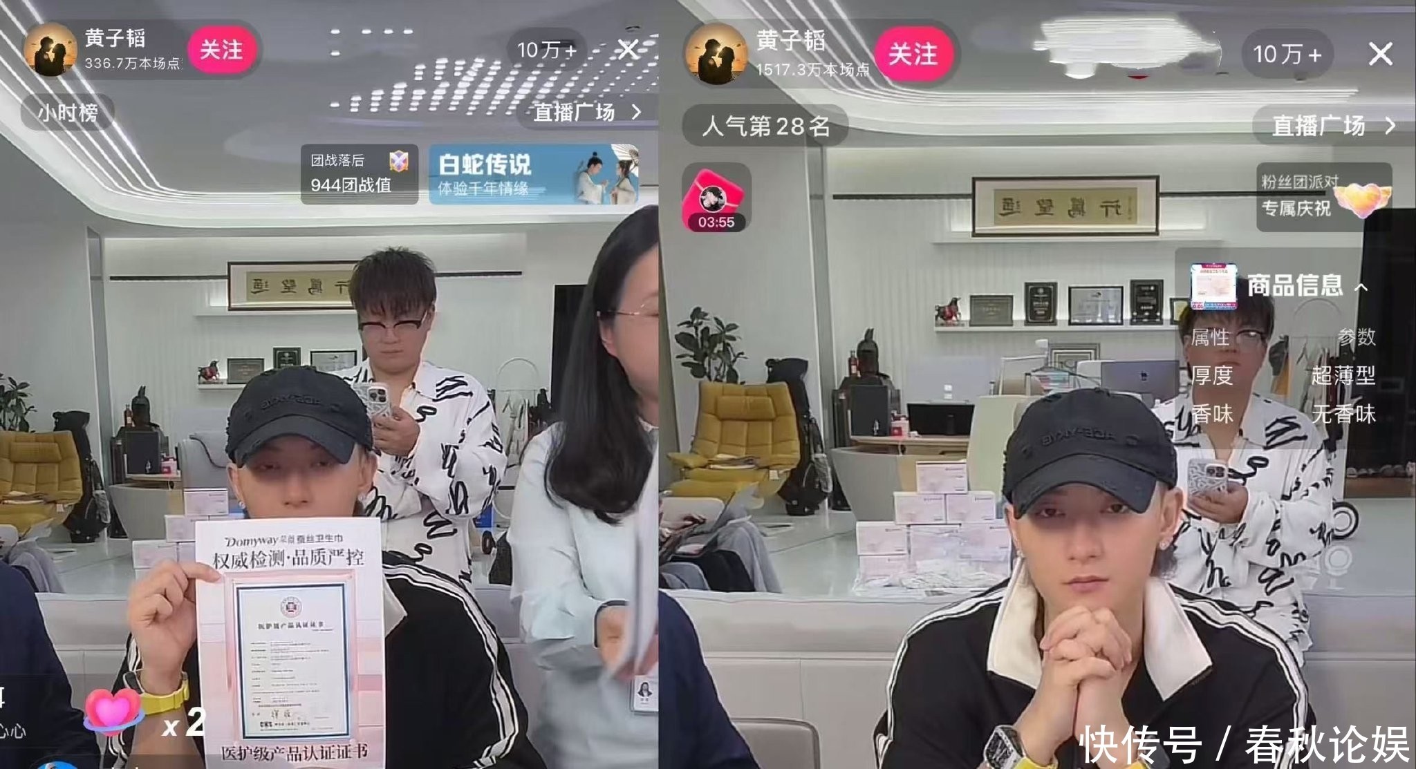 无数网友涌入直播间围观这场“云婚礼”,实时在线人数迅速突破十万大关。面对高涨人气,黄子韬情绪激动,一边高喊“记得点点关注”,一边安排抽奖送手机回馈粉丝。