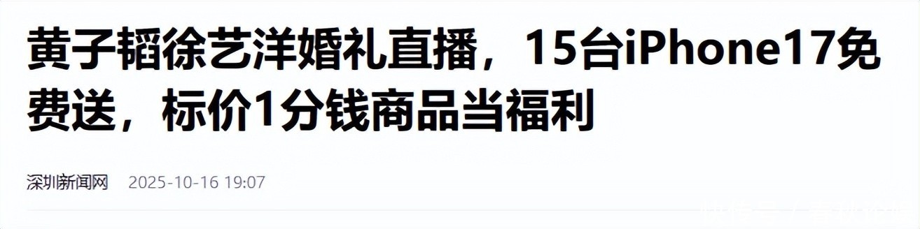 10月16日,黄子韬与徐艺洋正式步入婚姻殿堂。本应是人生中最私密也最温情的时刻,新郎却因一句“今天我结婚,大家点点关注”冲上热搜。